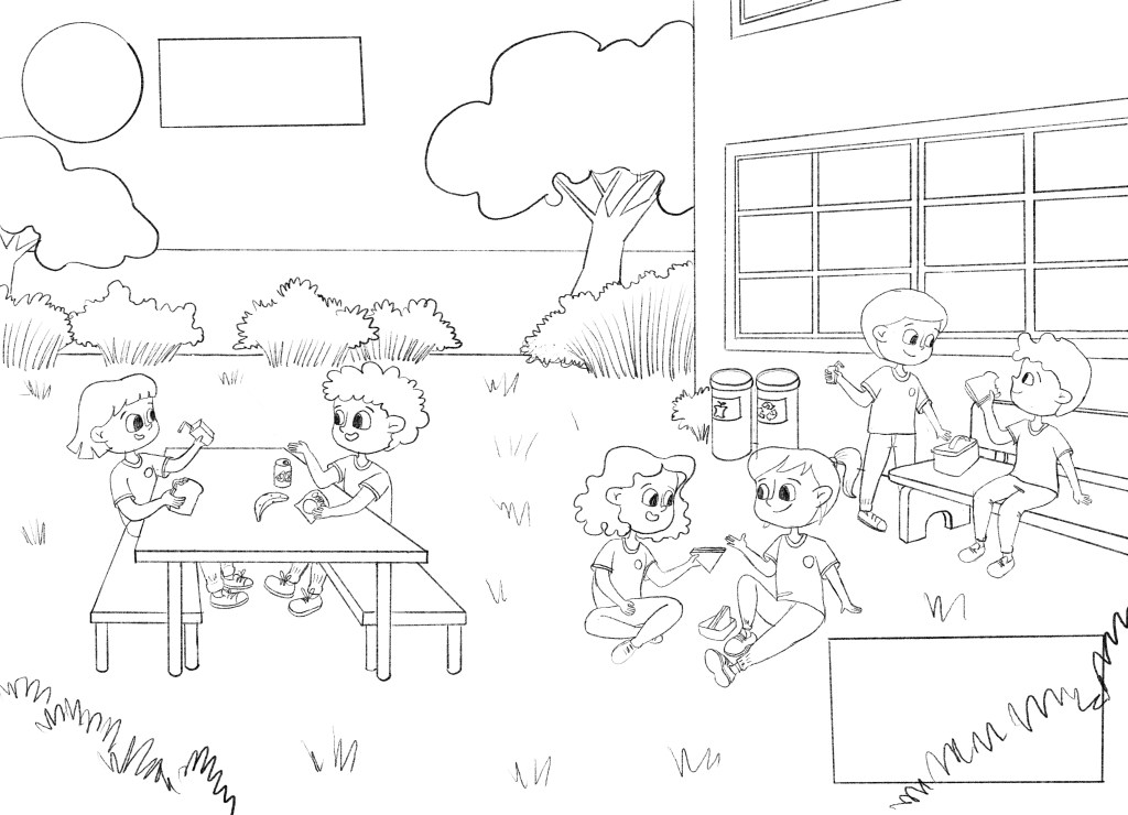 (En.) This is a conceptual project developed for textbook chapter openings. I chose to represent different children in situations within the school, one at the lunchtime and another in the classroom. I really enjoyed making it, so I will share the finals arts and also the process.