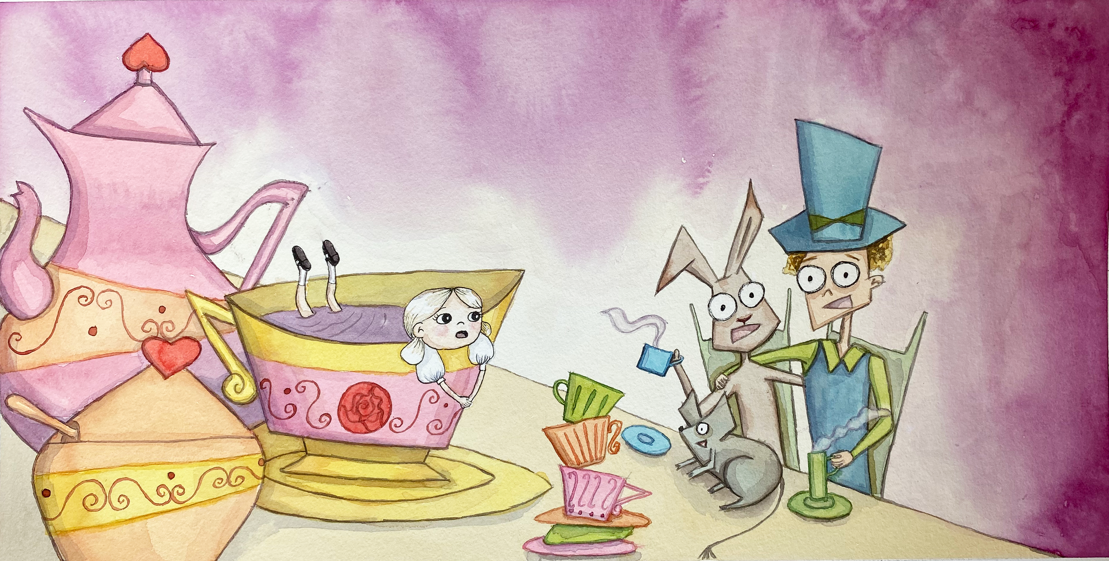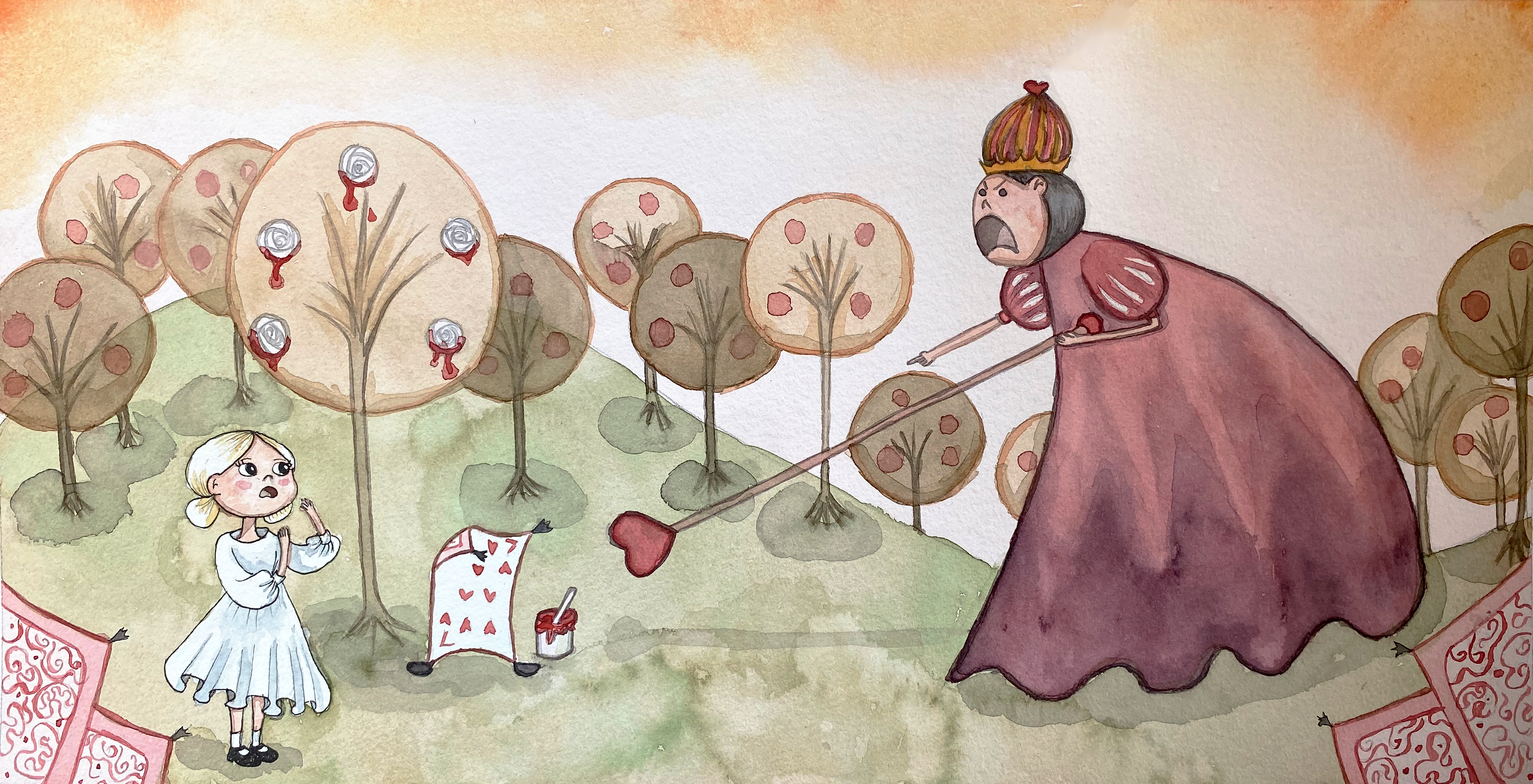 (Pt:) Este é um projeto de ilustração pessoal para um livro infantil, baseado no livro Alice no País das Maravilhas de Lewis Caroll. Sempre adorei este livro, então quis ilustrá-lo em aquarela tradicional