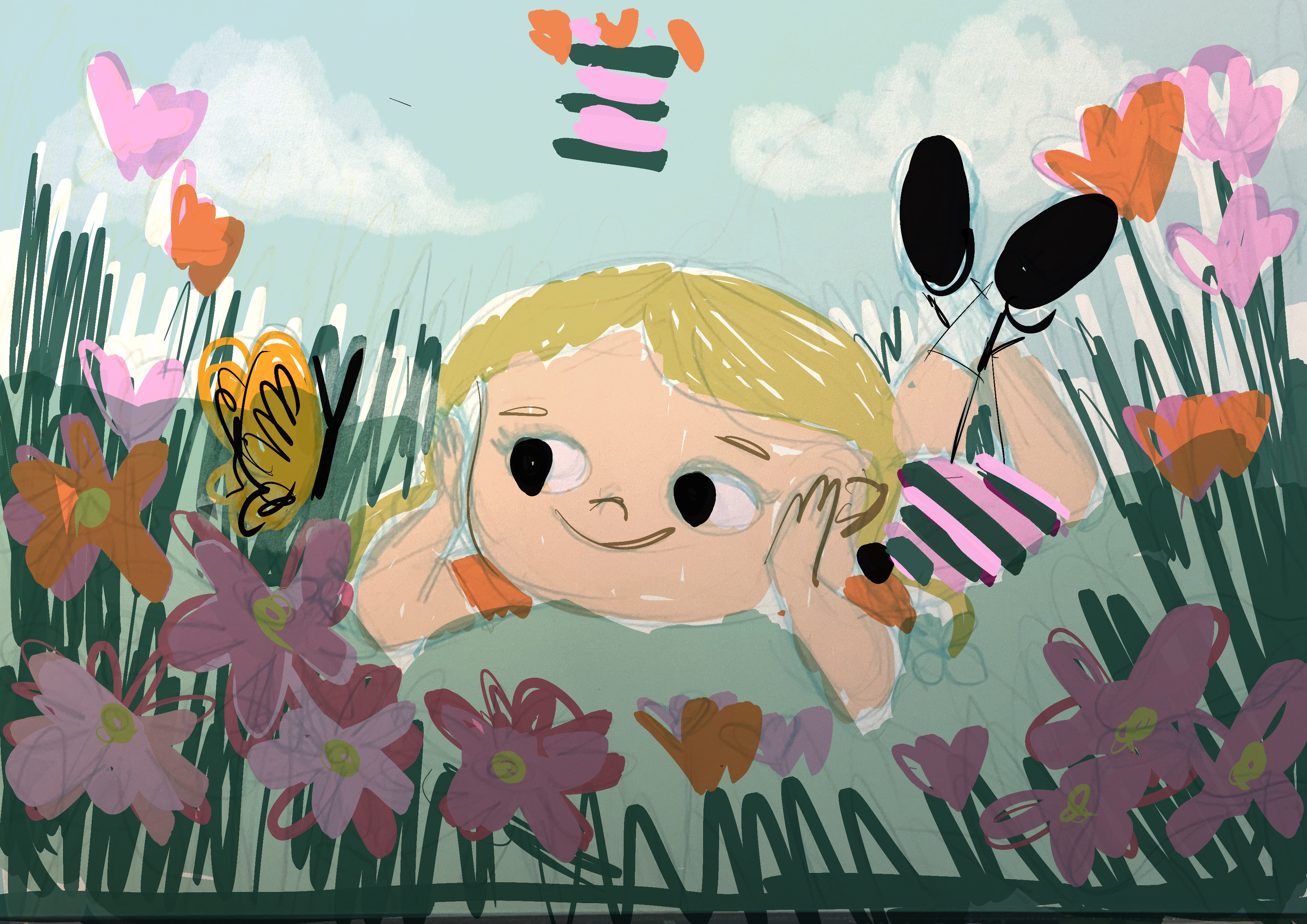 (En:) This is a personal project based on an idea I had about a girl playing among flowers.