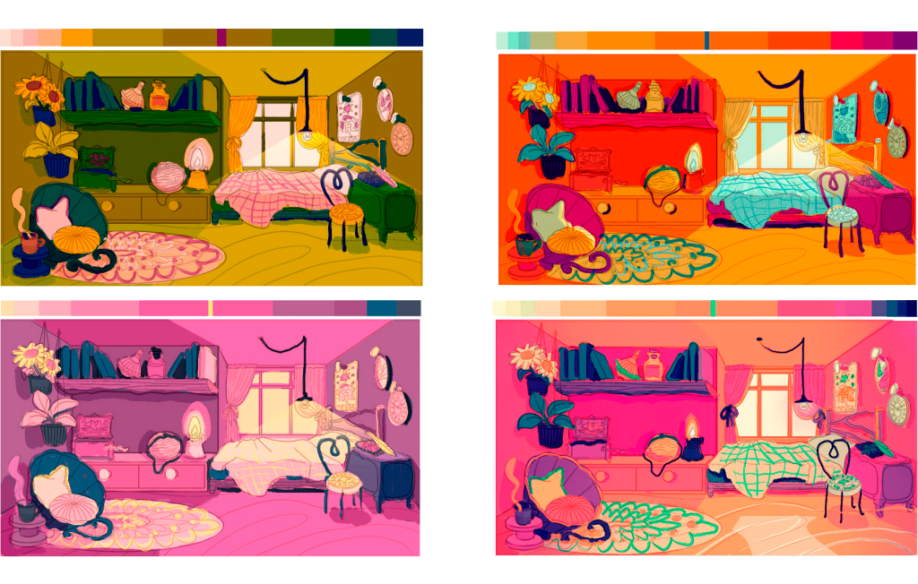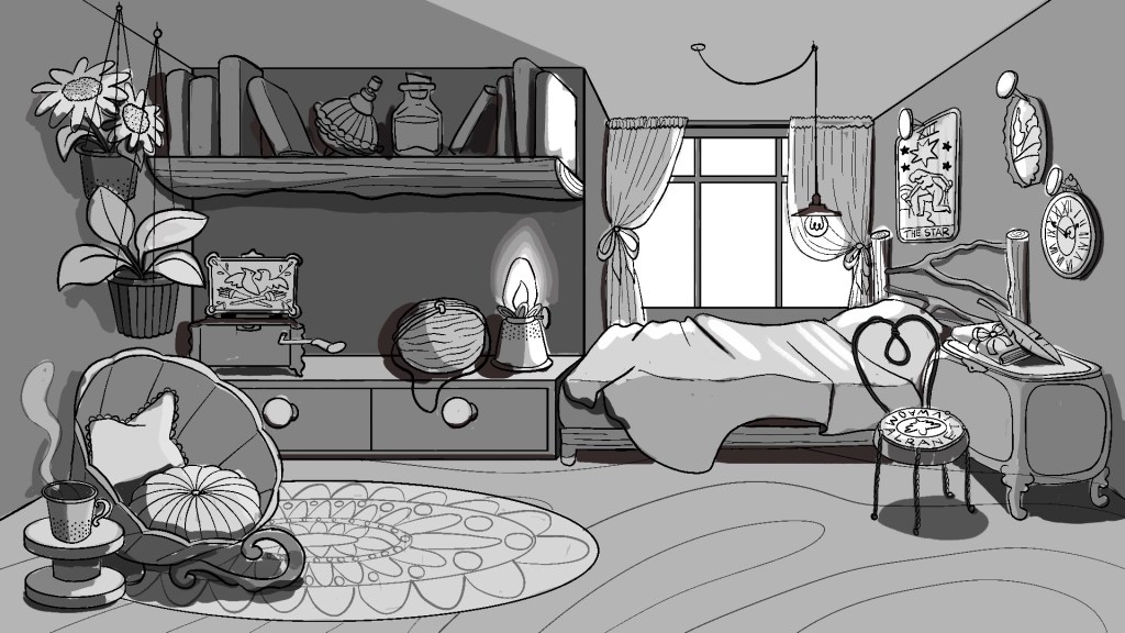 En: Aurora is a character developed for a background design course for animation.I went through the concept phase, character and props definition, thumbnails, color palette exploration, and finally the development of the final background piece
