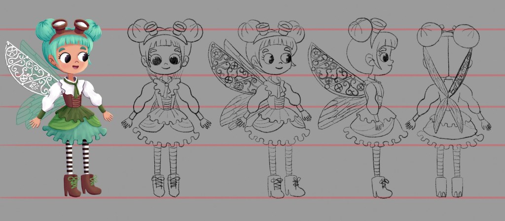 Pt: Aurora é uma personagem desenvolvida para um curso de cenário para animação.Passei pela fase de conceito, definição do personagem e props, thumbs, exploração de paletas de cores até o desenvolvimento da peça final do cenário.